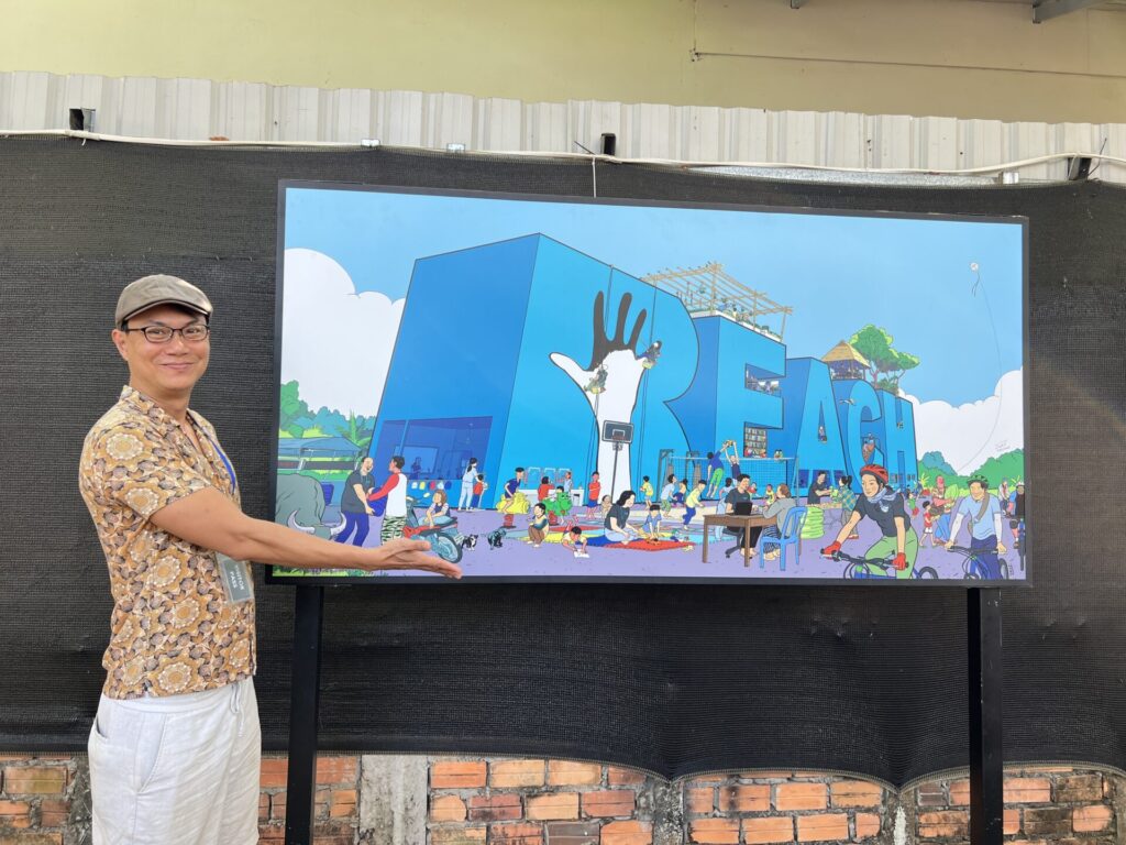 Joshua reflects that, “On my last visit, I was really impressed by REACH and the work they do for the community. So, I wanted to show everything about their programs as much as possible. I like to draw pieces that make you look at them for a very long time before you see everything. This painting does exactly that, and by donating this artwork to REACH, I wanted to show the students that their own stories – the things they see every day in Siem Reap –are worth sharing with the world.”